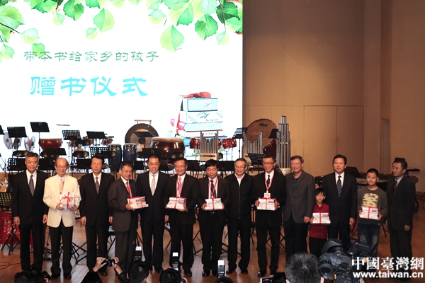 活動現場還開展了“帶本書給家鄉的孩子”大型文化公益活動,北京市副市長王寧、市政府副秘書長尹培彥以及與會各部門領導向臺灣中小學校長協會理事長翁慶才以及臺灣校長和學生代表贈書。北京市副市長王寧表示,帶本書給家鄉的孩子,特別是給臺灣的孩子是我們的共同心願,希望通過書籍的精神交流,能夠讓兩岸孩子們共同弘揚中華傳統文化,拉近兩岸同胞心靈的距離,這不僅是兩岸同胞共同的責任和紐帶,也是共同實現中華民族復興的堅強精神指引。
