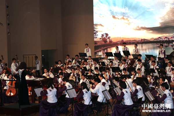 來自北京五中金帆民樂團的50余位同學演奏了《印象國樂大曲》《大宅門寫意——盧溝曉月》《菊花臺》等七支民樂曲目,為京臺兩地嘉賓帶來了一場音樂饕餮盛宴。來自京臺兩地的校長和師生400余人共同欣賞了充滿中華傳統文化元素的民樂演出。