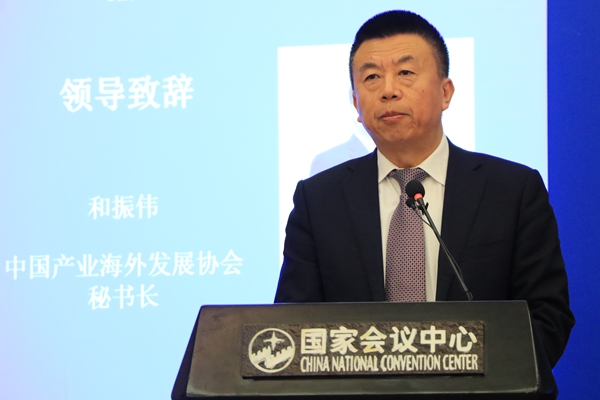 中國產業海外發展協會秘書長和振偉在發布會上發言。(中國臺灣網 孫伊靜 攝)