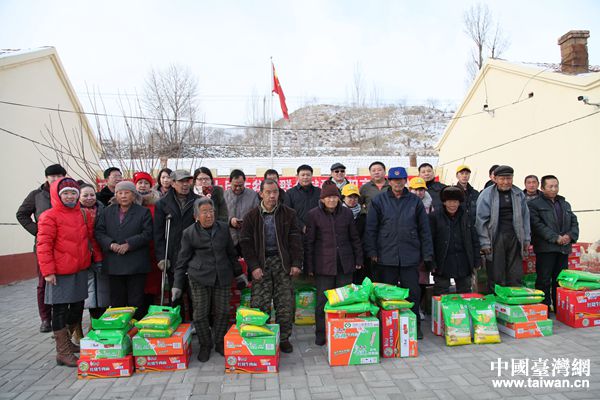 中國臺灣網1月9日訊 (記者 袁楚)1月8日,由頂新公益基金會組織的“愛在身邊,情暖心間”慰問貧困家庭活動來到了山西省大同市陽高縣許家園村。臺灣頂新公益基金會理事長滕鴻年帶領著頂新集團旗下各企業事業部的愛心志願者,為許家園村的貧困家庭捐贈了慰問物資。當地接近零下十幾度氣溫,並沒能掩蓋住慰問活動所營造出的溫暖氛圍。