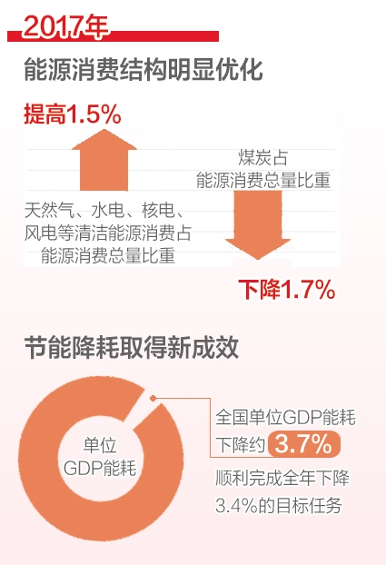 節能降耗取得新成效。經初步核算,2017年,全國單位GDP能耗下降約3.7%,順利完成全年下降3.4%的目標任務。