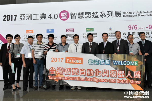 辦事處李榮民主任(左9)陪同中國機械工業聯合會參訪團觀展。(中國臺灣網發 機電商會臺北辦事處供圖)