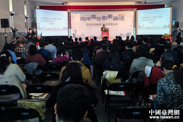 辦事處協助舉辦“兩岸青年創業論壇”,李榮民主任致辭。(中國臺灣網發 機電商會臺北辦事處供圖)