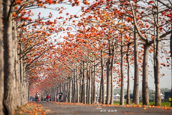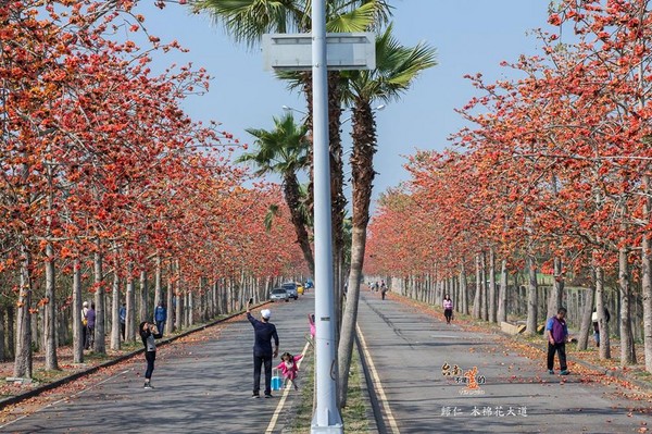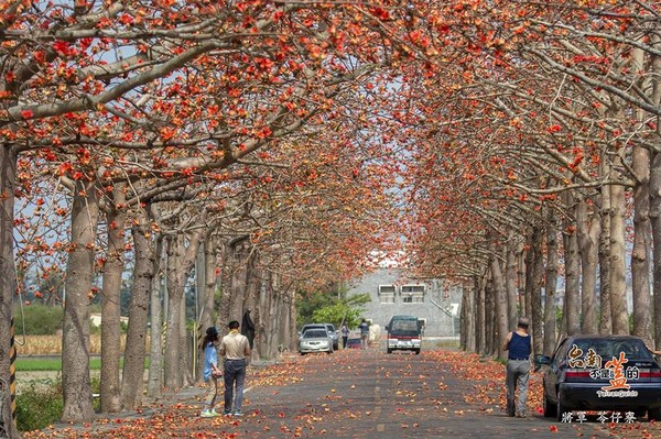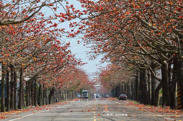 告別冬天,橘紅色木棉花為春天帶來舒心暖意,臺南不少地方都能賞木棉花,火紅花朵為鄉間小路染上一抹艷麗色彩,綿延數公里,或是掉落一地鋪成紅地毯,美景將天空渲染成一片火紅,活像身處油畫之中,吸引不少攝影玩家、旅客搶先拍照。