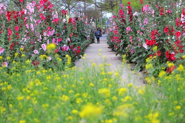 中國臺灣網3月16日訊 據臺灣東森新聞雲報道,近日,有臺灣驢友在網絡上分享蜀葵花海美景,花朵由淺入深,純潔白、粉嫩紅及酒紅的蜀葵花朵像是披上鮮艷外衣,攀上高高直立的藤蔓,曼妙的隨風擺動,邁入第五年的臺灣“念戀學甲蜀葵花文化節”今年結合金黃色的小麥田、黃澄澄的油菜花,呈現繽紛耀眼的暖色係景致,花期約3月至4月中旬,賞花的民眾可得把握春季限定的美景!