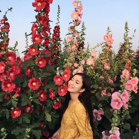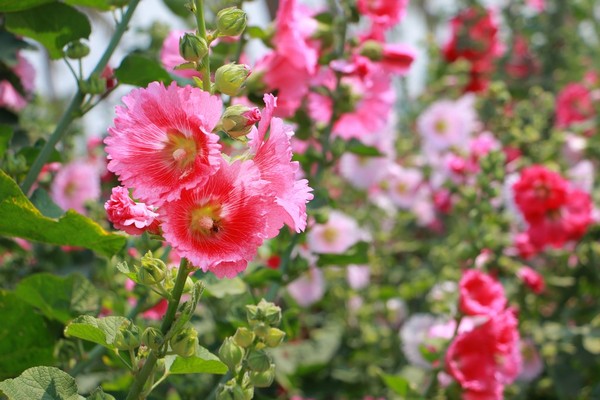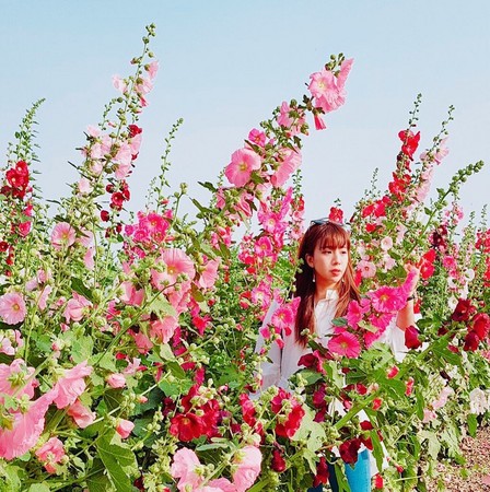 蜀葵花別名“一丈紅”,生長高度達1至3公尺,株株都比人還要高,漫步壯觀的蜀葵花海迷宮之中,人也顯得嬌小許多,踏入交錯的花田小徑,輕易被高聳繽紛的花叢包圍,秒融入燦爛的景致,化身“花仙子”。