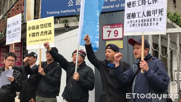 反對納七休一例外!臺灣產業工會怒吼:“變形工時七休一,運輸工人做甲死”。(圖片來源:臺灣東森新聞雲)