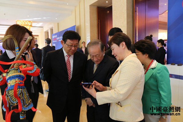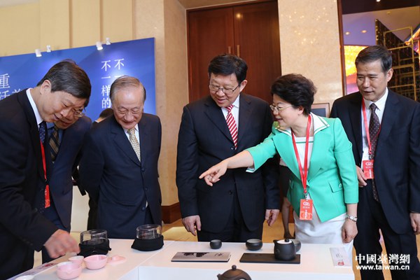 海協會會長陳德銘、臺灣新黨主席鬱慕明、中國臺灣網總經理劉曉輝、中共寧波市鎮海區委書記林雅蓮觀展。(中國臺灣網 李岳 攝)
