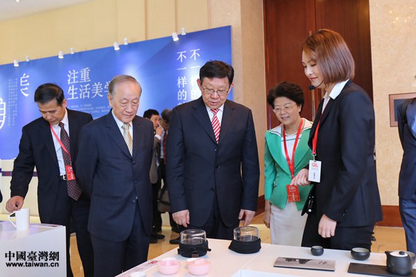 海協會會長陳德銘(左一)、臺灣新黨主席鬱慕明(左二)觀展。(中國臺灣網 李岳 攝)