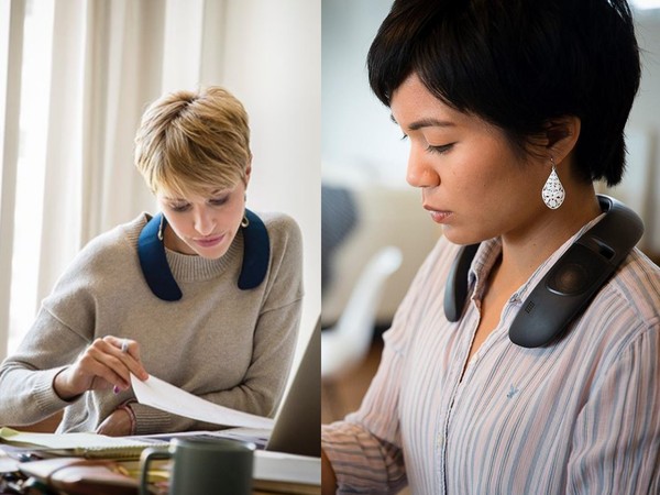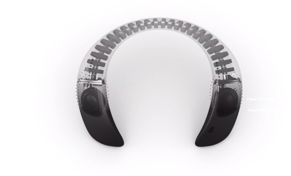 “穿戴式耳機”SoundWear Companion揚聲器,特殊的技術能讓音樂對準耳朵播放。(圖片來源:臺灣“東森新聞雲”)