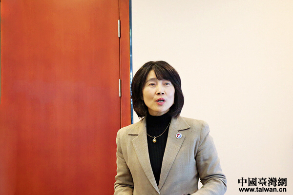 鄭州市臺協常務副會長詹麗珠接受記者採訪。(中國臺灣網 張亞靜 攝)