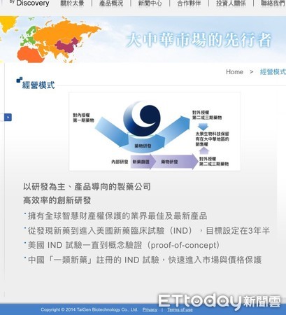 中國臺灣網4月26日訊 據臺灣“東森新聞雲”報道,生技類股新藥開發再傳捷報!太景醫藥研發控股公司表示,旗下可用來對抗有“超級細菌”抗生素新藥太捷信,經俄羅斯的授權夥伴R-Pharm三期臨床試驗解盲成功。太景的抗生素新藥太捷信,是臺灣TFDA第一個審查通過的臺灣人研發之全新化合物新藥,也是唯一取得大陸1.1類新藥藥證的臺灣研發抗生素,目前已成功授權全球30余國,並在大陸、臺灣銷售。