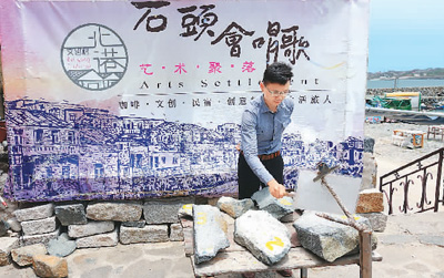 北港村位于平潭君山東麓,背山面海,村里有大片黛青色石頭厝。在林智遠臺灣家鄉的不遠處也有同樣叫“北港”的地方,這令他備感親切。“當我第一次來到北港時,我就喜歡上了這里。”林智遠說,當時村落響應平潭國際旅遊島建設的規劃定位,開始開發鄉村旅遊,修繕石頭厝民宿。他決定用自己的方式,用藝術文創去點亮村落的新生命。