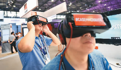 參觀者在今年召開的世界移動大會上體驗基于5G技術的虛擬現實。