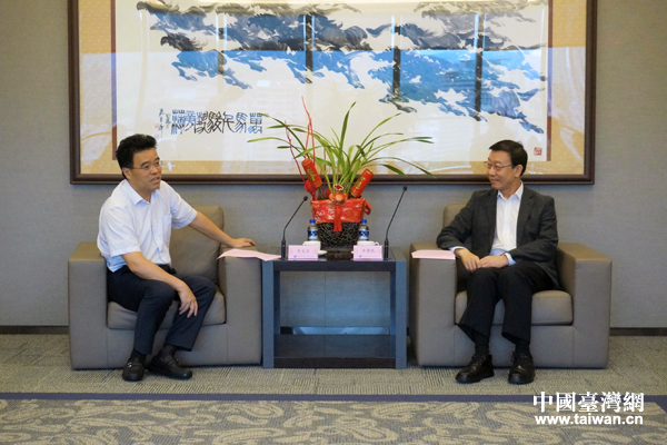 8月14日,機電商會臺北辦事處主任李榮民(右)會見寧波市李關定副市長(左)率領的參訪團一行。(中國臺灣網發 機電商會臺北辦事處供圖)