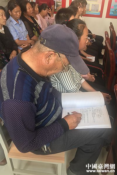 一名村民邊聽邊做筆記。(中國臺灣網 黃曉迪 攝)
