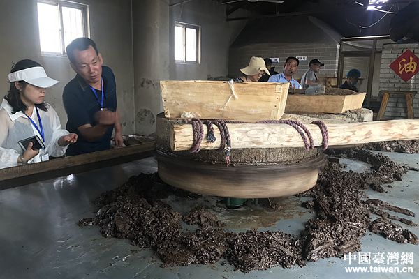 網媒記者參觀胡麻油的生產過程。(中國臺灣網 黃曉迪 攝)