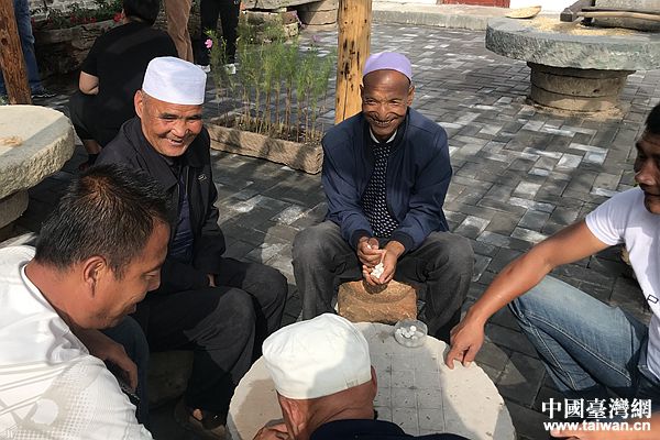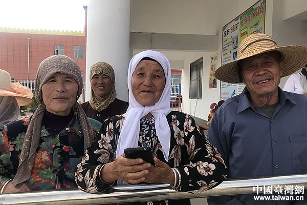 2018年8月15日,海原縣三河鎮富陵異地扶貧搬遷安置區,幾位爺爺奶奶露出幸福的笑臉。(中國臺灣網 黃曉迪 攝)