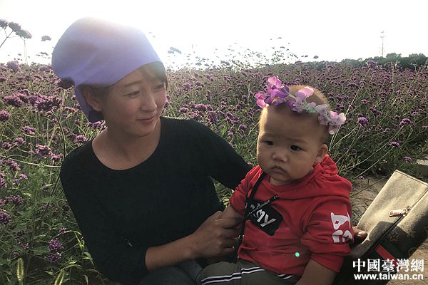 2018年8月13日,固原市原州區三營鎮幹溝村劉姥姥農樞山莊,一對幸福的寧夏母子在的馬鞭草花海中享受休閒時光。(中國臺灣網 黃曉迪 攝)