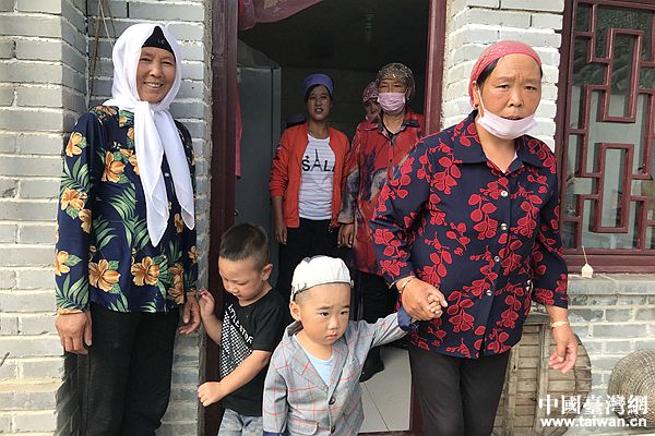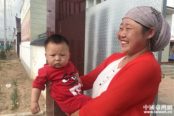 2018年8月15日,海原縣三河鎮富陵異地扶貧搬遷安置區,一對喜慶的母子。(中國臺灣網 黃曉迪 攝)