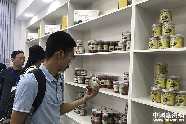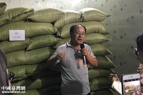 公司負責人向記者介紹桃仁的產銷情況。(中國臺灣網 黃曉迪 攝)