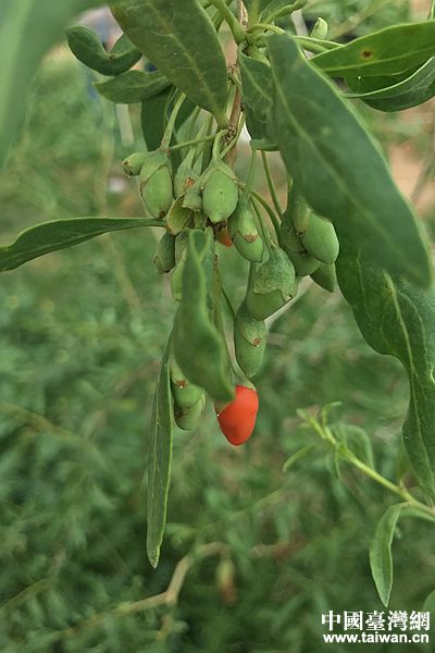 枸杞種植園內,枸杞鮮果已成型。(中國臺灣網 黃曉迪 攝)