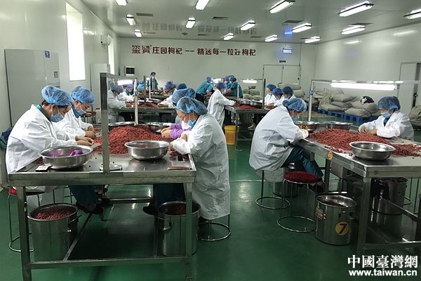 生產車間內,工人們正在仔細分揀枸杞幹果。(中國臺灣網 黃曉迪 攝)