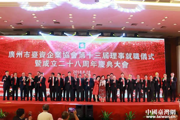 8月28日晚,廣州市臺資企業協會第十三屆理事就職儀式暨成立二十八周年慶典大會舉行。(中國臺灣網 李奕均 攝)