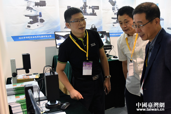 高偉副主任(右1)觀看參展商產品演示。(中國臺灣網發 機電商會臺北辦事處供圖)