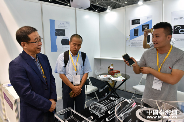 高偉副主任(左1)聽取參展商介紹。(中國臺灣網發 機電商會臺北辦事處供圖)