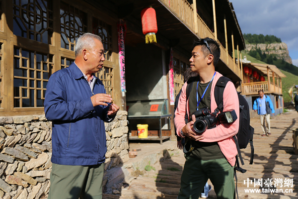 臺灣攝影師陳思豪對當地民俗專家的講解頗具興趣。(中國臺灣網 袁楚 攝)