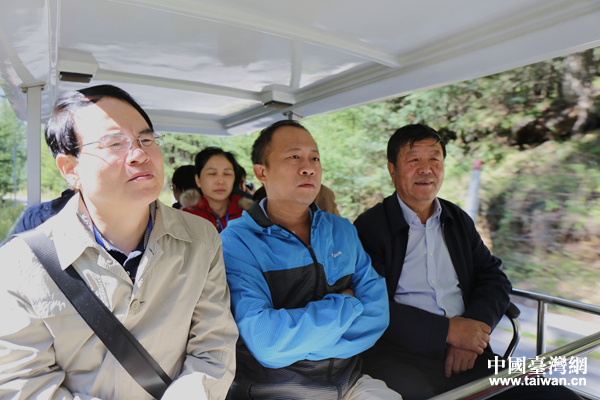 自媒體人在擺渡車上聽取關于萬年冰洞講解。(中國臺灣網 袁楚 攝)
