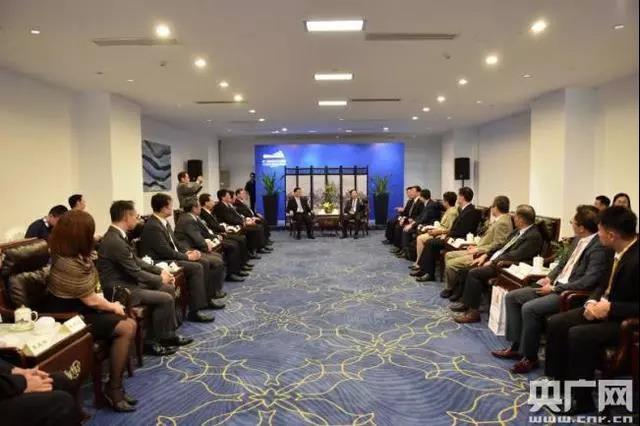 △廈門市委副書記陳秋雄會見來廈參加第二十屆投洽會的臺灣六大經濟團體的臺商代表。(王璽 攝)