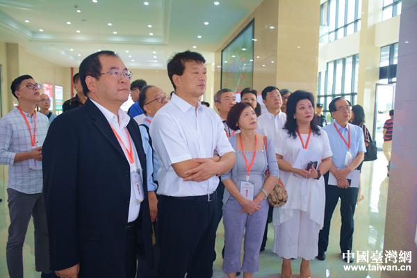 臺灣標竿企業促進會理事長鄧岱賢認真聽取項目講解。(中國臺灣網 發)