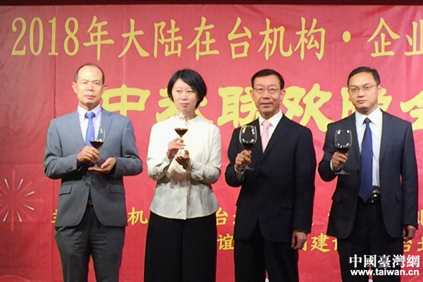 聯歡晚會主辦單位領導祝酒。(機電商會臺北辦事處供圖 中國臺灣網發)