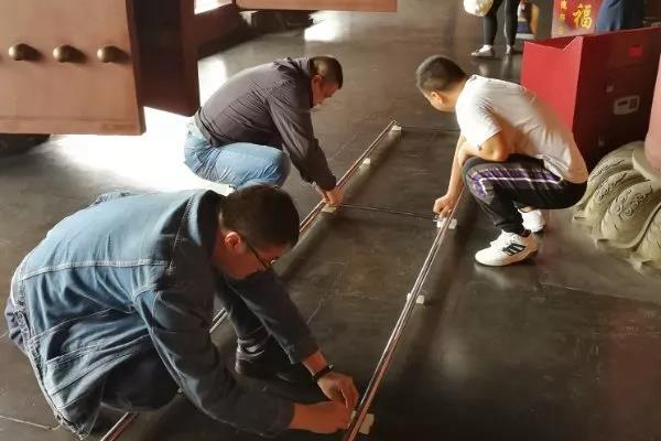 攝制組成員組裝滑軌,籌備拍攝。(圖片來源:九洲音像出版公司)