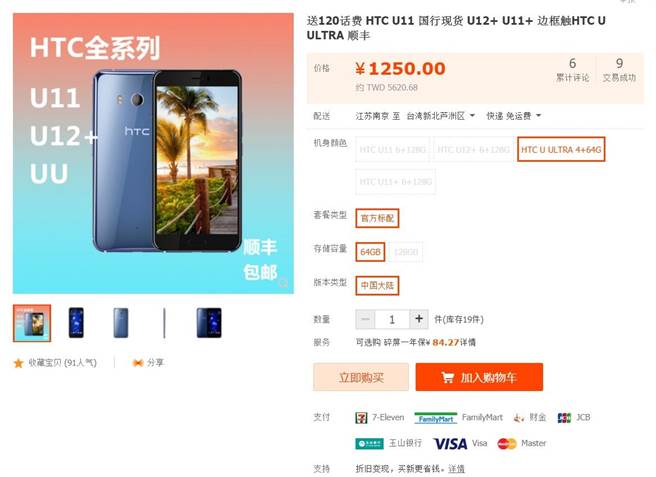 hTC去年的旗艦U Ultra如今在大陸僅剩下1000元出頭的價格 (圖╱翻攝自淘寶)
