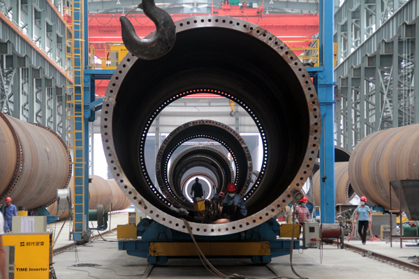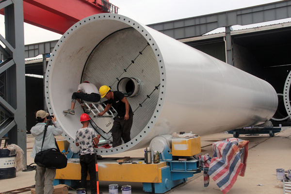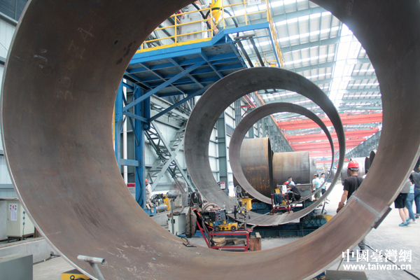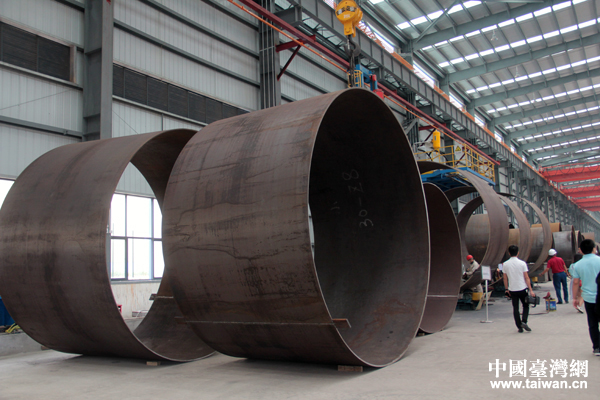 粵水電新能源項目廠區,預計項目一期建成後,年生產2MW及以下陸上風電塔架、3MW-6MW海上風電塔架、海上風電導管架合計280套。目前該項目已正式投產。(中國臺灣網 王怡然 攝)