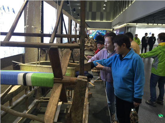 圖為盲人朋友觸摸白洋淀農民生產工具