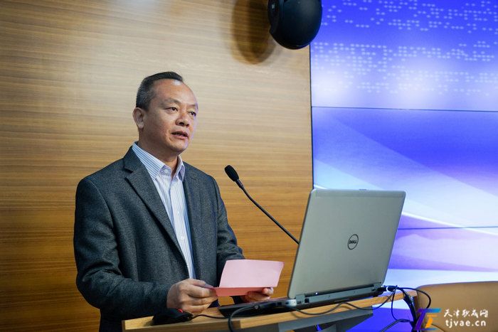 天津市臺辦副主任吳榮華致辭。(圖片來源:天津職業教育與成人教育網)