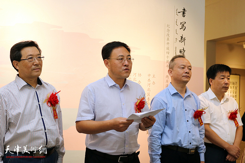 河北區委常委、區委統戰部部長周鴻濱主持開幕儀式並介紹展覽情況。(圖片來源:天津美術網)