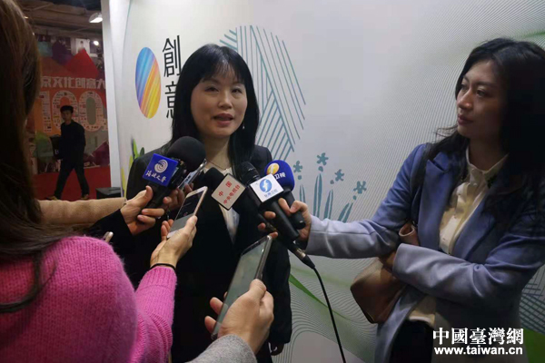 臺灣文創館負責人葉吉淩接受媒體採訪。(中國臺灣網 王怡然 攝)
