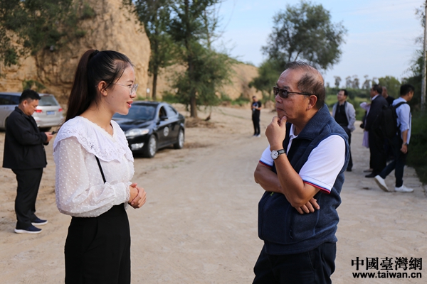 黃仲熙(右一)向講解員了解殺虎堡歷史。(中國臺灣網 袁楚 攝)