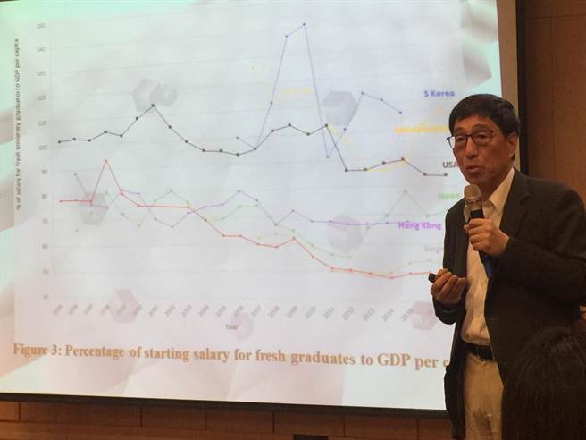 郭位表示,教改失敗產生很多後果。首先大學錄取率逼近百分之百,讓生源素質下降。相較之下美國長年維持在45%,香港更只有20%。“孔子說不患寡而患不均,但臺灣很均啊(所有人都能進大學),所以這句話不對,尺有所長,寸有所短,有些人不讀大學也許成就更好。”大學過多,一來壓低學費,二來衝擊到學生畢業後起薪,三來教授薪水無法調高。郭位一一用數據證實,臺灣的畢業生起薪不到GDP的50%,遠低于美國;教授薪資也慘不忍睹。郭位主張給有實力教授高薪才能專心研究,科研產出才能回饋到國際化。