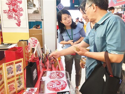 圖為高雄市民咨詢剪紙作品。(人民日報海外版 馮學知 攝)