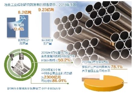 有關數據顯示,“十三五”期間1.5億噸鋼鐵去產能上限目標有望在2018年完成,比原計劃提前兩年;我國查處了700多家涉及地條鋼的企業,約1.4億噸產能被出清。2018年1月份至9月份,鋼鐵行業產能利用率為78.1%,高于全國工業平均水平。