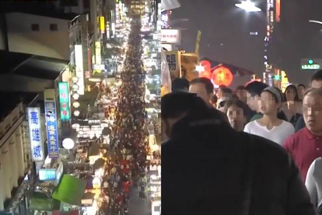 網友空拍元旦假期六合夜市滿滿人潮。(圖片來源:臺灣“中時電子報”)