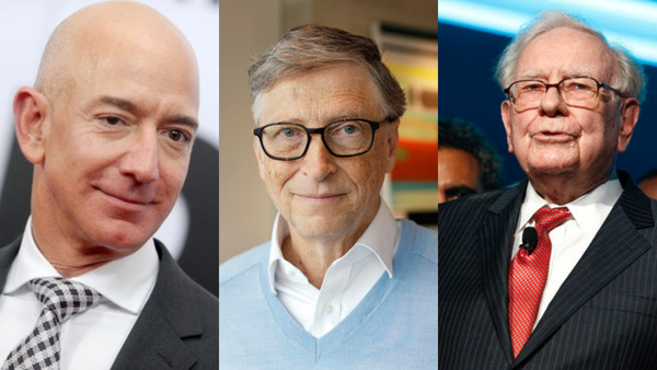 2018年全球富豪榜前三名,左起為亞馬遜創辦人貝佐斯、微軟創辦人比爾蓋茨、股神巴菲特。(圖片來源:臺灣“東森新聞雲”)