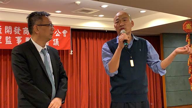 高雄市長韓國瑜(右)報告開春3件喜事,相信“2019一定會好過”。(圖片來源:臺灣“中時電子報”)