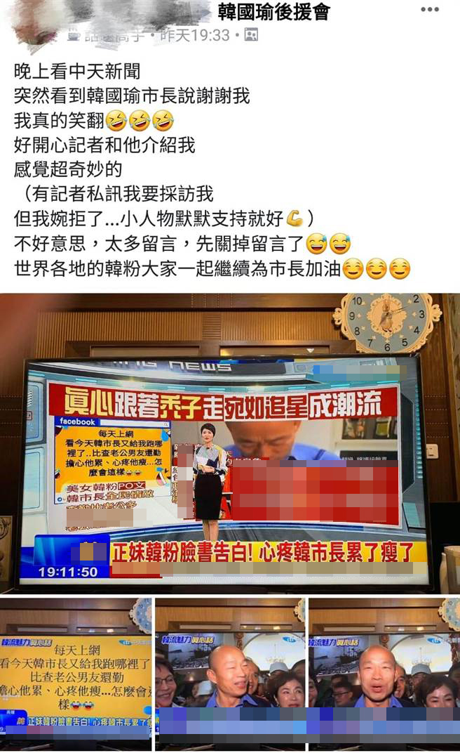 這位正妹“韓粉”看到電視節目後,開心得在臉書“韓國瑜後援會”再次發文,說感謝韓市長對自己的回應,並說有記者想要採訪她,但都被她婉拒了,因為“小人物默默支持就好”,還說希望“世界各地的韓粉大家一起繼續為市長加油”。(中國臺灣網 王怡然)